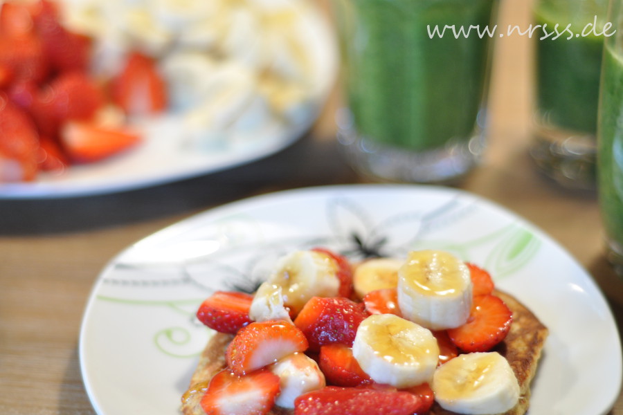 Das Frühstück bestand aus Pfannkuchen oder Waffeln mit frischem Obst, Honig und grünen Smoothies für alle. Mittags gab es selbstgemachte Naschereien – was die Mädels alle für tolle Rezepte auf Lager haben!