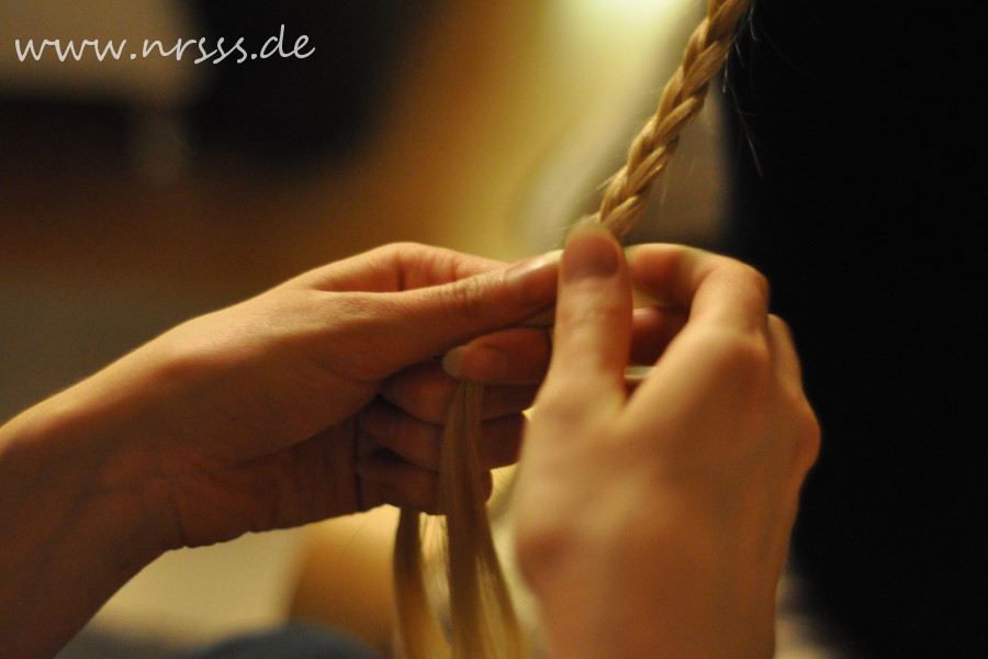 Mal ganz davon abgesehen, dass ich es mit tatkräftiger Unterstützung von Nessa und ich glaube ihrer Freundin geschafft habe, den Anfang des holländischen Fünferzopfes an mir selbst zu flechten, haben wir gegenseitig viel ausprobiert. Bzw. Nessa und Heike haben viel ausprobiert.
