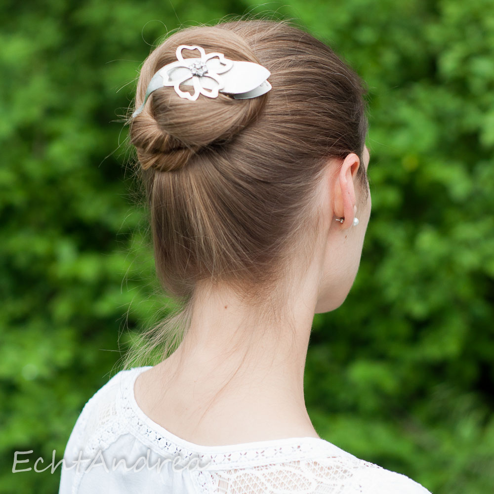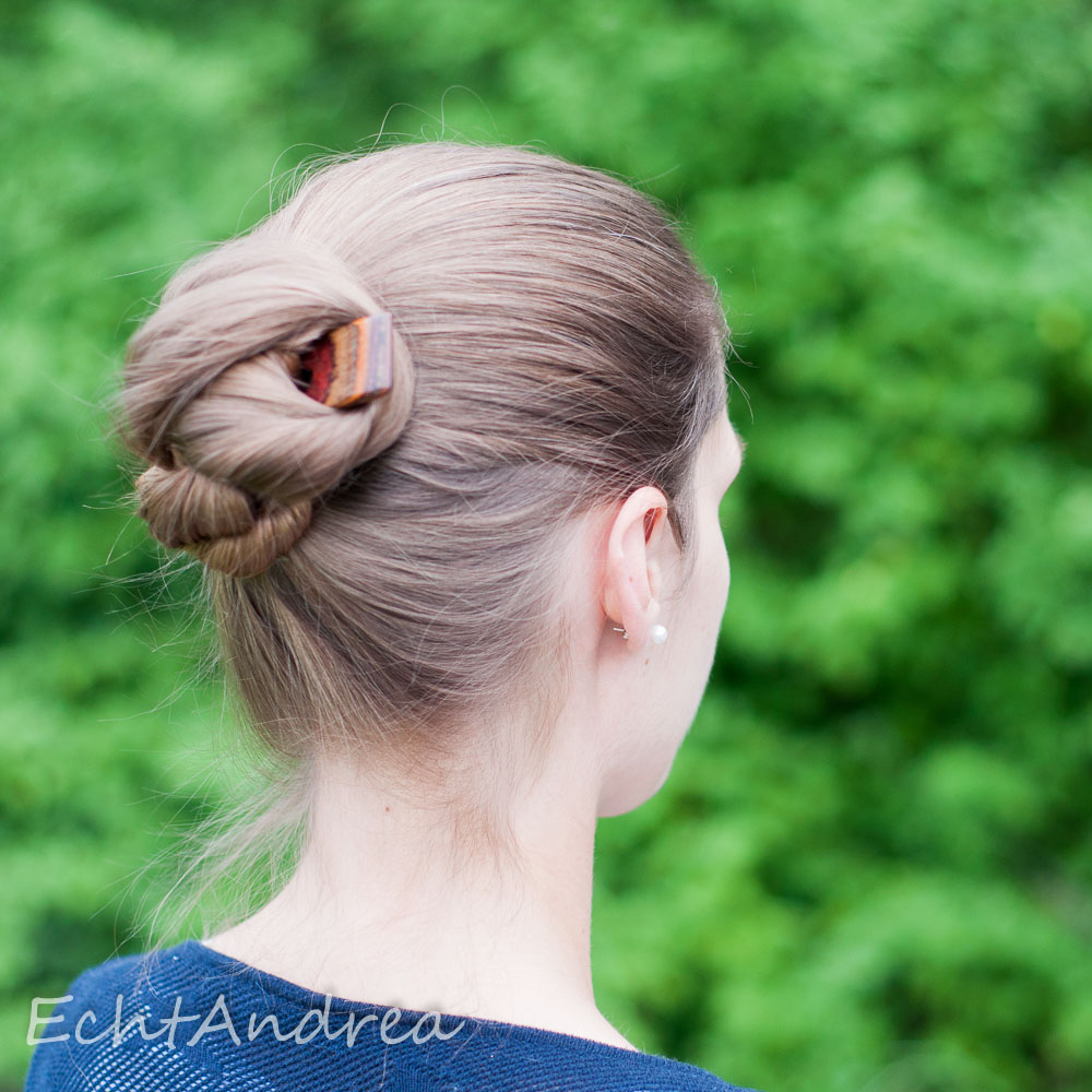 Also habe ich meine beiden liebsten Dutts, den Nuvi-Bun und den LWB, jeweils einmal mit schlichtem Haarschmuck und einmal mit eher exklusiveren Stücken für euch gewickelt und festgesteckt.
