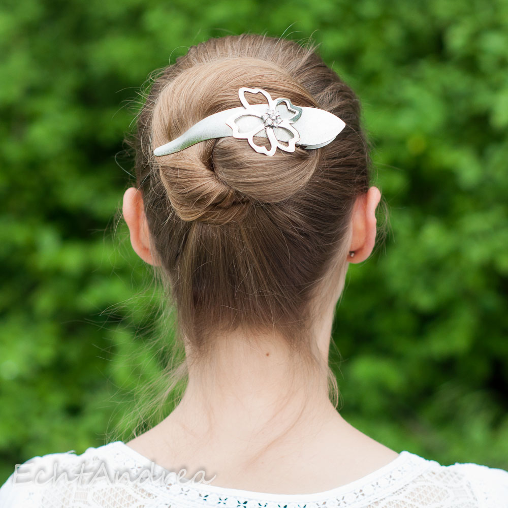 Im Alltag trage ich tatsächlich meistens sehr schlichten Haarschmuck, der entweder sehr gut mit meiner Haarfarbe oder der Farbe meiner Kleidung harmoniert. Auch wenn ich lange Haare toll finde und sie das erste Hobby sind, das mich über so lange Zeit hinweg begleitet, trage ich es ungerne so sehr „nach außen“.